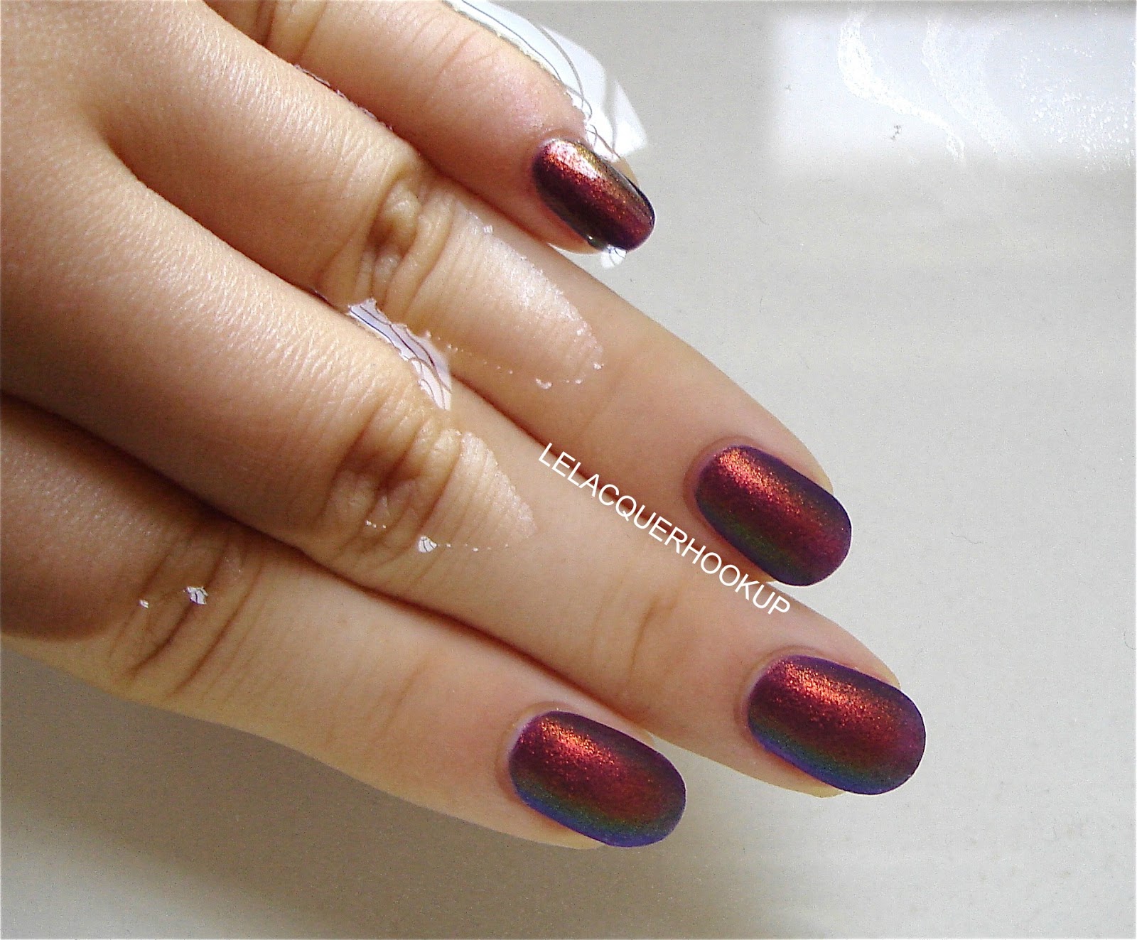 Above the Curve Caty Perry-winkle is a lovely periwinkle creme with very subtle holo. I'm actually sad that the holo is so weak, but the color and formula really make up for it! It looks great both in sunlight and the shade. I used just 2 coats. It was very pigmented and creamy. Unlike with many holos, base coat didn't affect the application - it still went on smoothly. It dried very shiny, but slowly. No top coat.